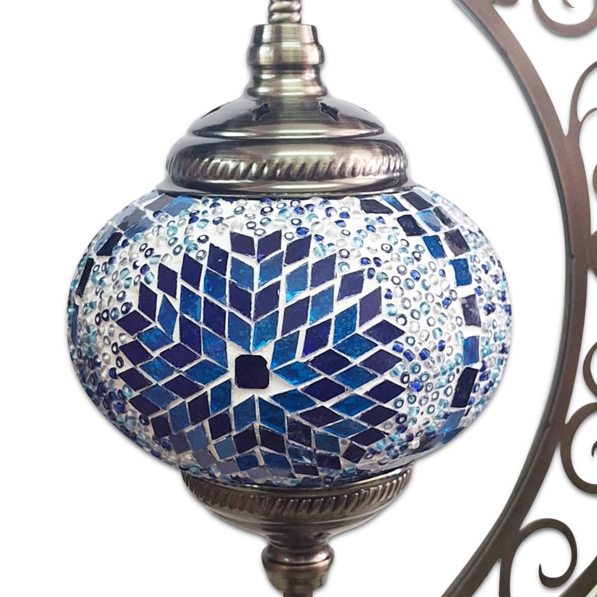 Abajur Lua Turco Mosaico Metal Colorido Azul e Branco 40 cm